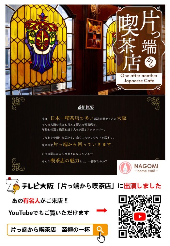 top 2025年10月22日 by nagomi 【click↑】YouTubeが起動します ワンランク上のひとときを いたずらに過ぎゆく日々の中で、スペシャルなコーヒーを楽しめる和みの場として訪れてほしい、そんな願いから「NAGOMI」と名付けました。 小さなお子様も一緒にお越しください 散歩のついでにお立ち寄りください 香り高くコク深いスペシャルティコーヒーと、 無添加天然酵母を使用したパンなど、からだに優しいランチ、軽食をご用意して皆様をお待ちしております。 そして、住まいのリフォーム相談もできるちょっと特別な場所。 珈琲を片手に気軽にお話しください。 nagomi_homecafe 🔮美))天明術〜心の羅針盤〜 🍴食))身体に優しい食事の提供 🏠住))リフォーム相談・工事 . 店主が選び抜いた豆の自家焙煎珈琲 . 〠大阪府守口市佐太中町6-50-6 【テレビ大阪 片っ端から喫茶店】YouTube↓ 【NAGOMI新メニュー】 さらにゆっくり 【NAGOMI Night開催】 佐太天神宮の夏祭 【タカラスタンダードイベント】 6/28 【タカラスタンダードイベント】 6/2 【水出し珈琲】 今年も始めました! 【三光神社】 天王寺区の神社で出店 【義援金】 岩手県大船渡市の林野火 さらに読み込む Instagram でフォロー